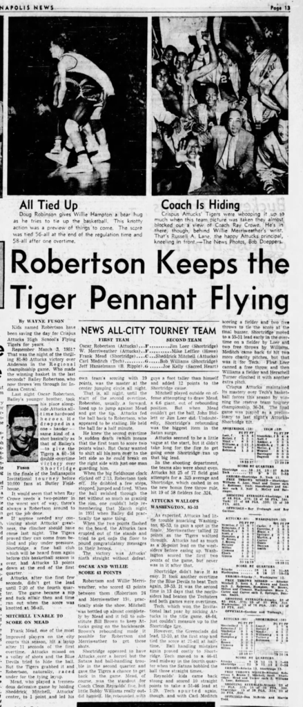 Attucks Wins 1954 Indianapolis Invitational Tourney Leld by Oscar Robertson & Willie Merriweather